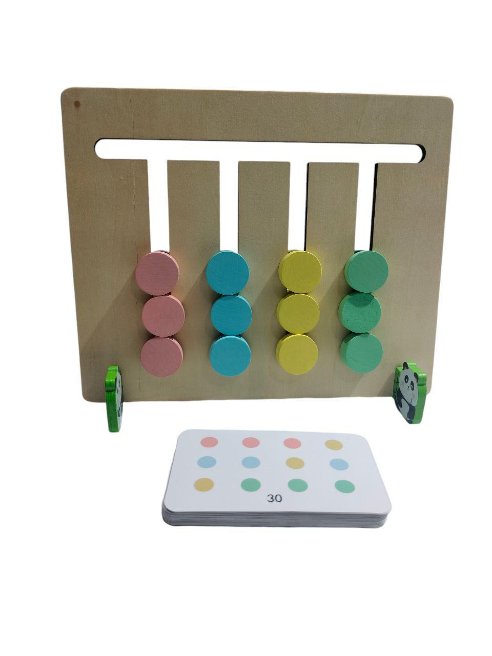 تحريك الألوان والأشكال على اللوح الخشبي يعزز التنسيق بين اليد والعين، مما يساهم في تطوير المهارات الحركية الدقيقة.