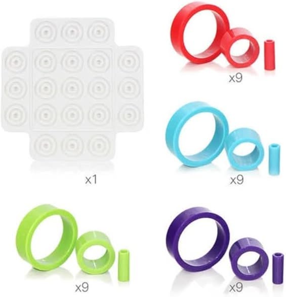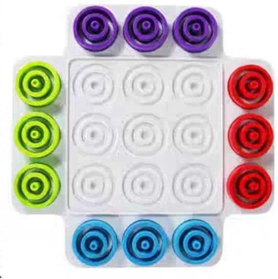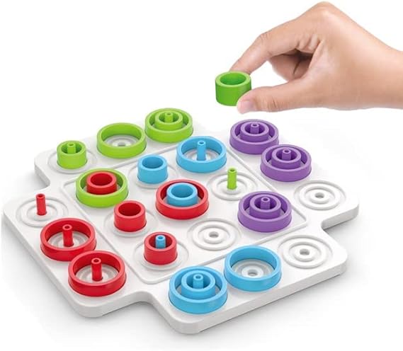 لعبة اكس او الجديدة التعليمية للأطفال بلوح بلاستيك متين و32 حلقة ملونة؛ تنمّي التفكير المنطقي، التركيز، والتمييز بين الألوان والأحجام في جو من المرح.